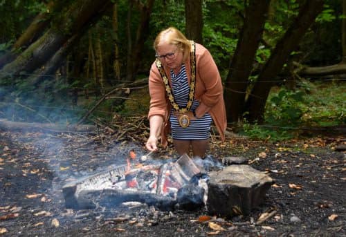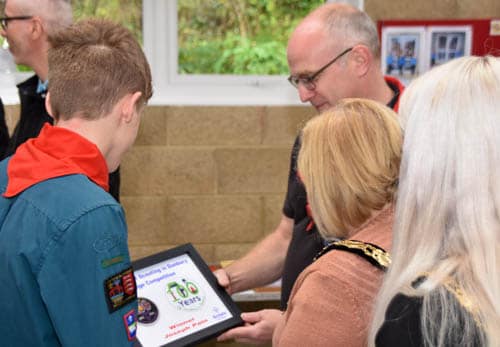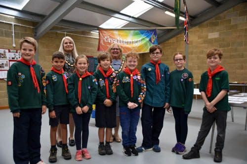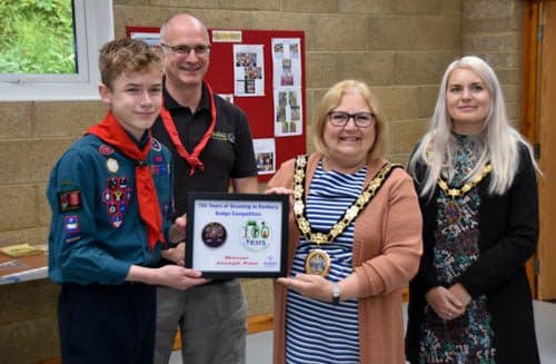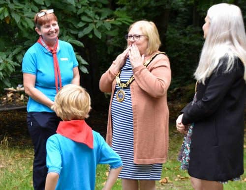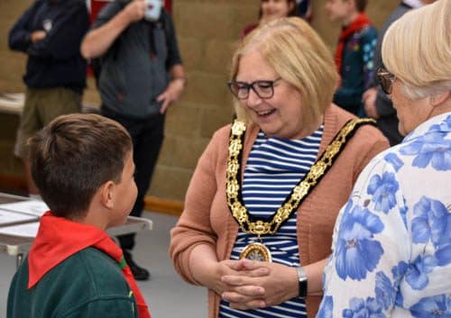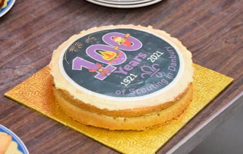 Founded in 1921, Danbury Scouts celebrated 100 years of Scouting in Danbury in 2021. We hosted events at the Scout Hall and at Riffhams Campsite on Saturday 4th September. At the hall we had a display of articles and photographs through the years, we welcomed former members of the Group and had a visit by Councillor Jude Deakin (Mayor of Chelmsford 2020 – 2022). She presented a commemorative frame to St Clere’s Scout, Joseph Pain (designer of our Centenary badge), talked to some members of the Cub packs and enjoyed a slice of Centenary cake.