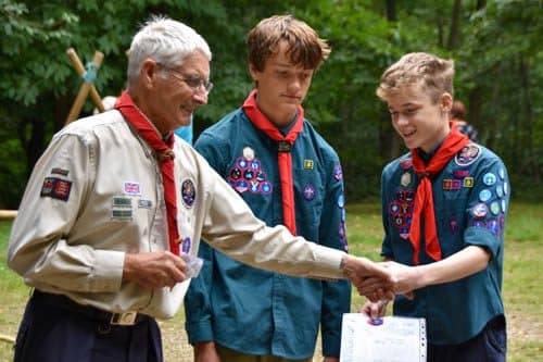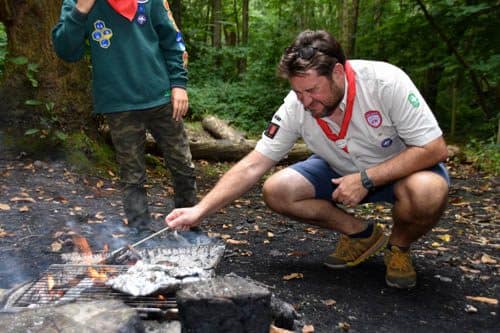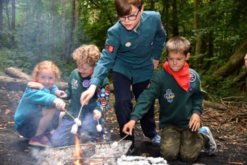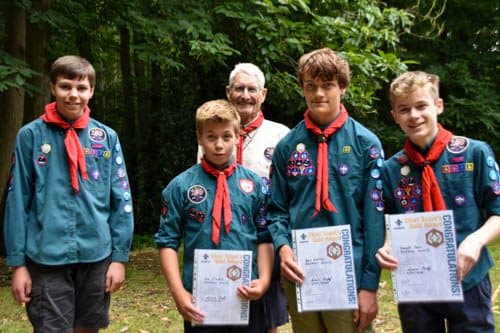 At Riffhams the Beavers, Cubs and Scouts spent time fire lighting, toasting marshmallows, making dens, following a Blind Trail, constructing a bridge, singing round the campfire and of course we all had cake! Three Scouts were also presented with their Gold Chief Scout Awards.